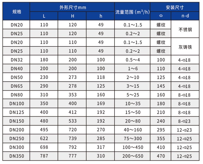 ■ 選型方法按照流量范圍選型