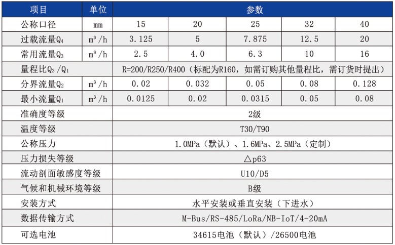 ■ 始動流量低,寬量程比(R160/R200/R250/R400),高準確度等級、穩定性好。